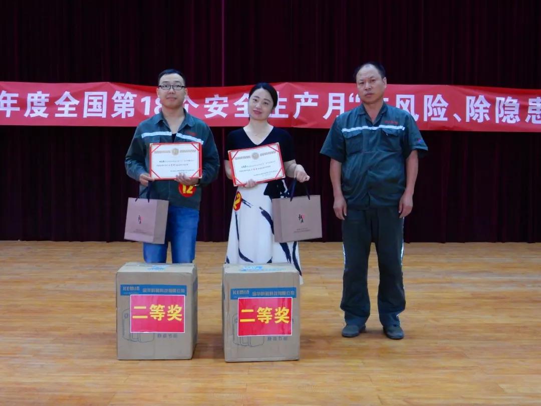 二等獎(jiǎng)兩名,由生產(chǎn)部王部長(zhǎng)為來(lái)自機(jī)動(dòng)部的獲獎(jiǎng)選手封曉琴和來(lái)自煉鋼廠的獲獎(jiǎng)選手候?qū)殢?qiáng)分別頒發(fā)榮譽(yù)證書及獎(jiǎng)品,并合照留念。